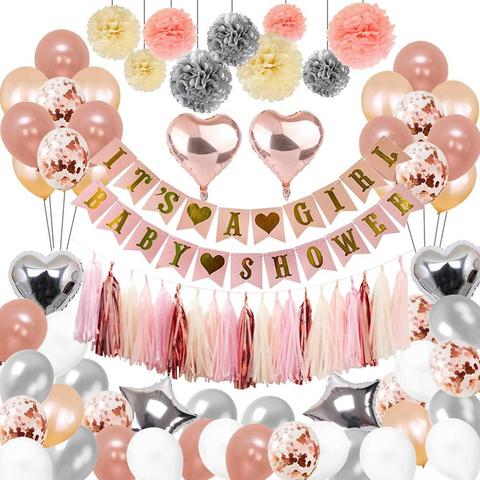 108 piezas decoraciones de la ducha de bebé para chica fiesta suministros incluir Banners pompones de papel globos borlas para bebé niñas