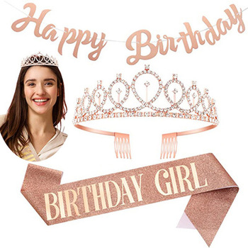Flysky Birthday Girl Glitter Sash y Crown Hair Band Set Decoraciones de fiesta para celebraciones